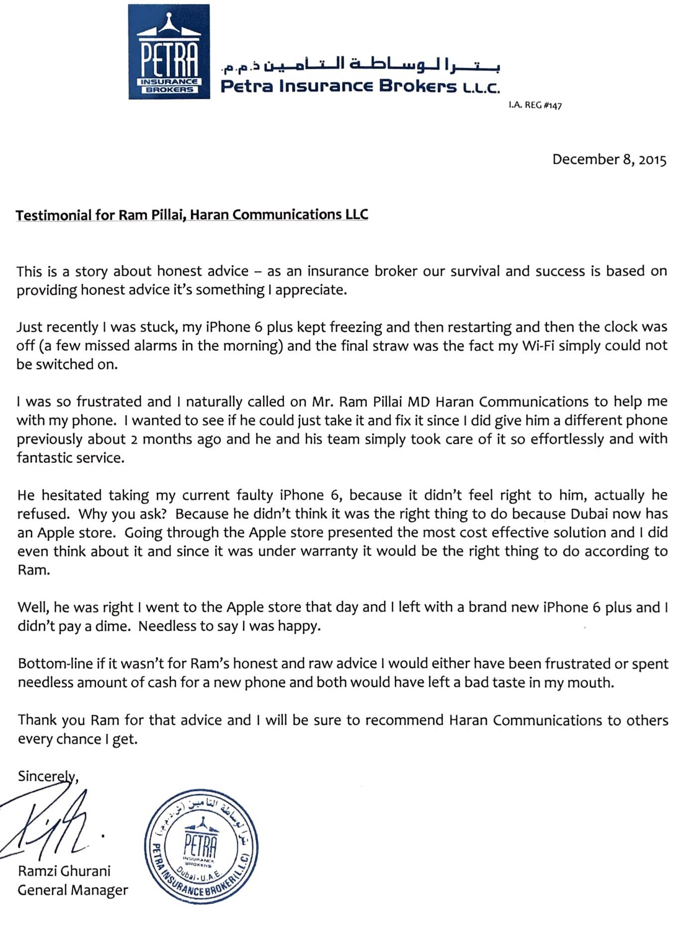 He hesitated taking my current faulty iPhone 6, because it didn't feel right to him, actually he refused. Why you ask? Because he didn't think it was the right thing to do because Dubai now has an Apple store. Going through the Apple store presented the most cost effective solution and I did even think about it and since it was under warranty it would be the right thing to do according to Ram.